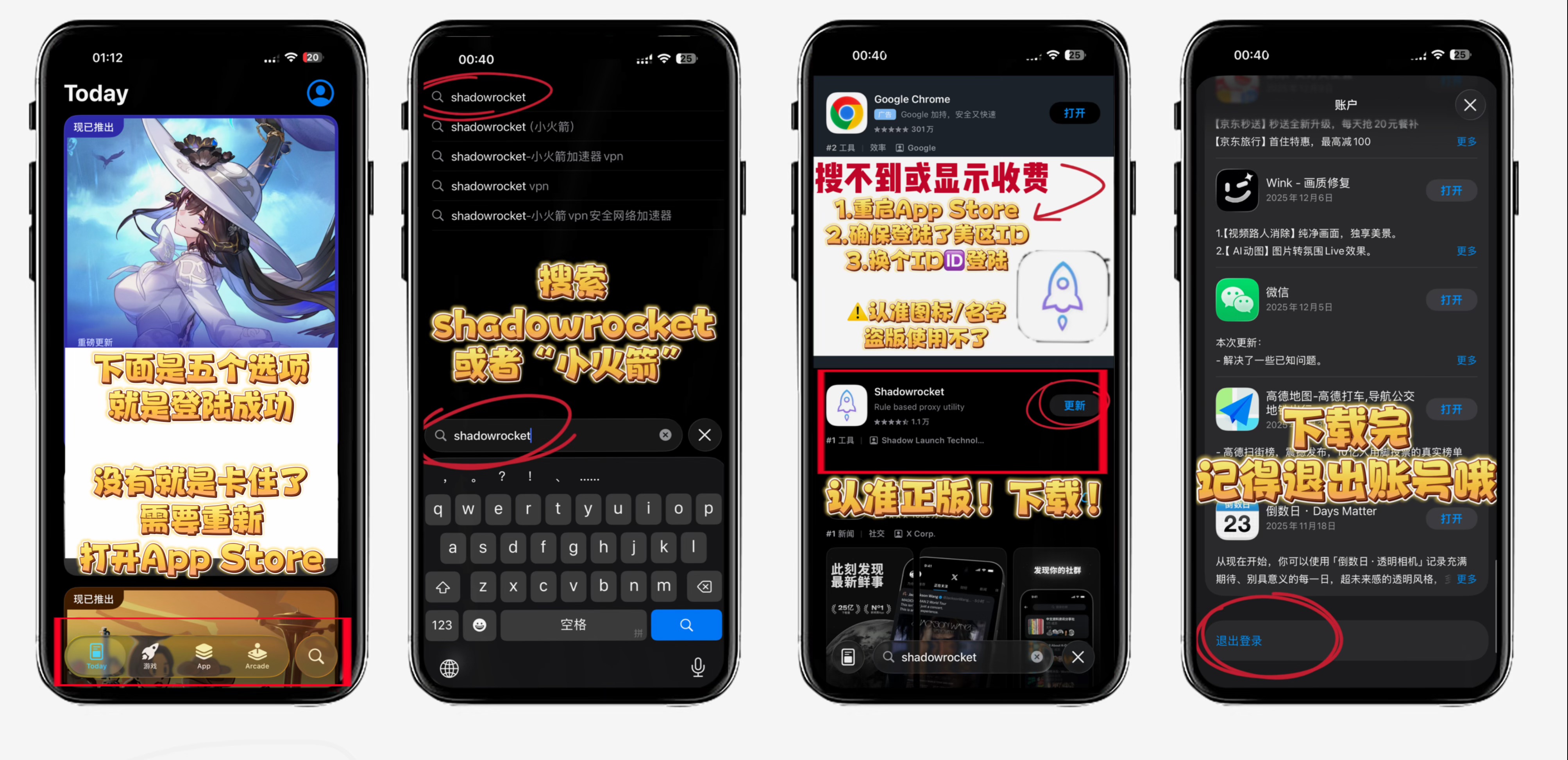 图一解决搜不到shadowrocket的问题,解决后下载你所需的软件即可